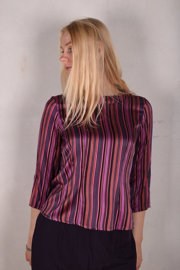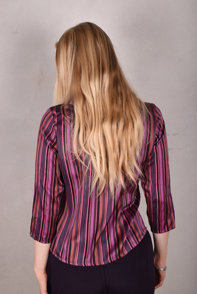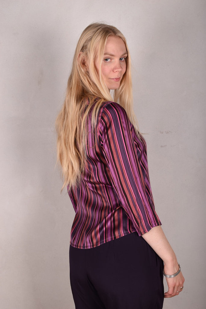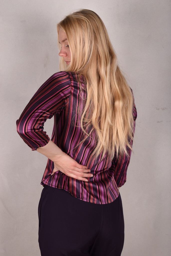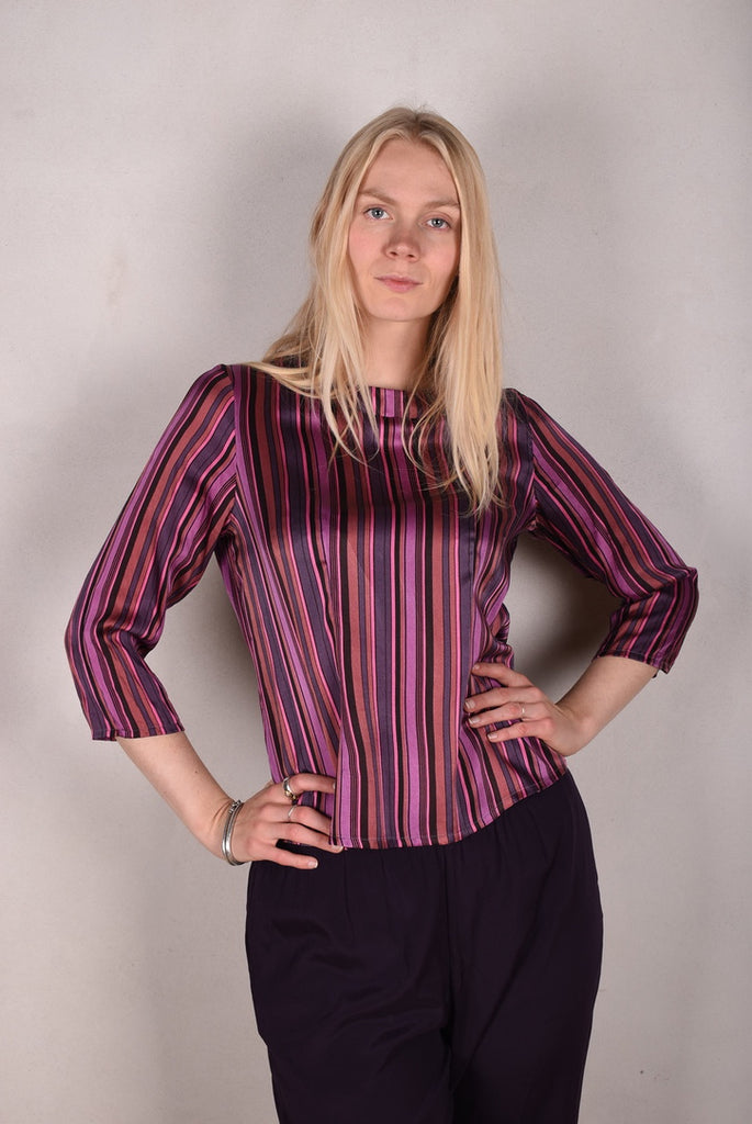 Audrey. Klassisk top i silke stretch satin. "M.B Stripe-petrol"