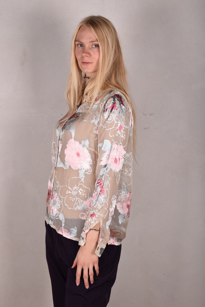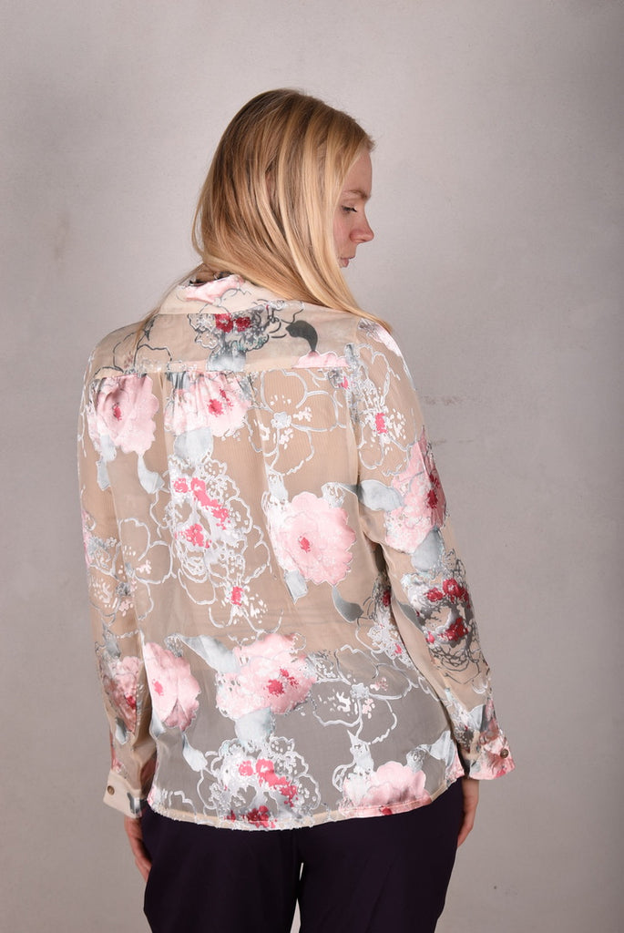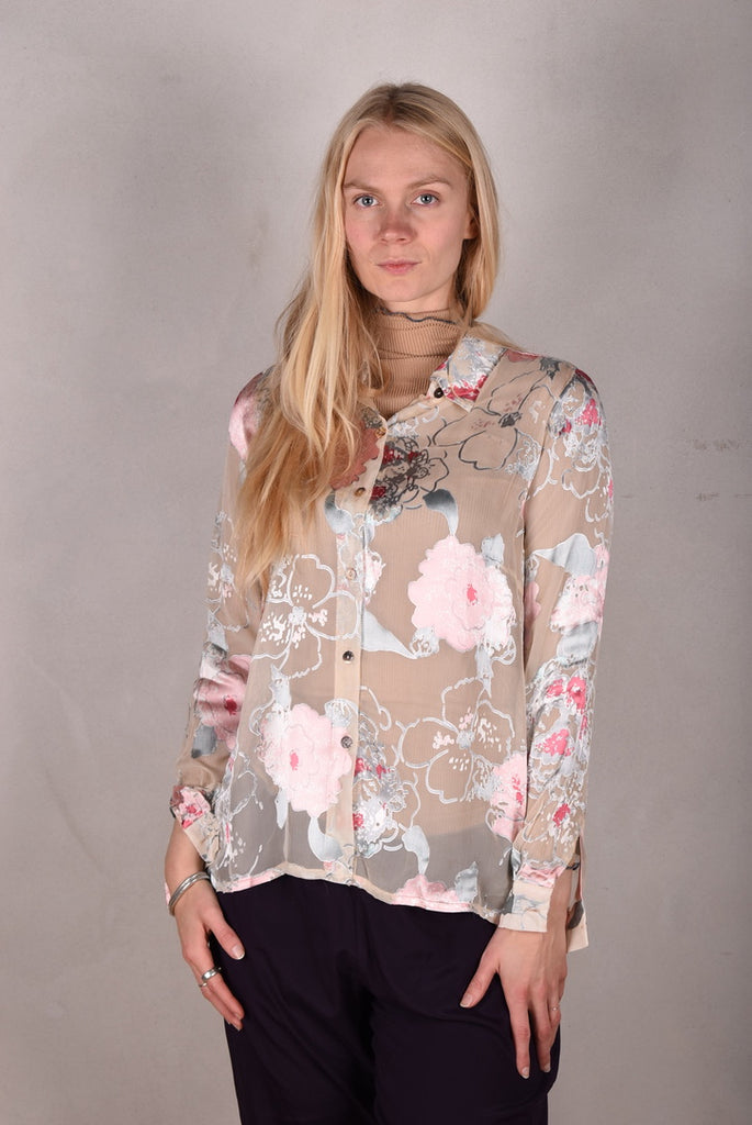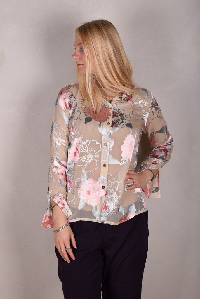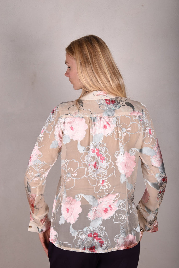 Tamie-Devoré. Klassisk skjorte i silke/viscose devoré " Greeting Rose"